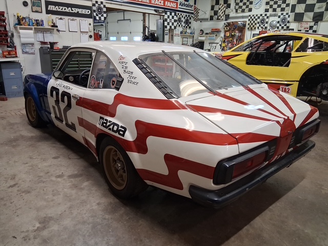 This RX3 has been a race car since 1980. It was built and campaigned by the late SCCA National Champion (MG) Bill Koch. The car competed mainly in SCCA events but also competed in three IMSA races. Twice in the “Columbus 500” street race and also the 1986 Lumbermans event at Mid-Ohio.