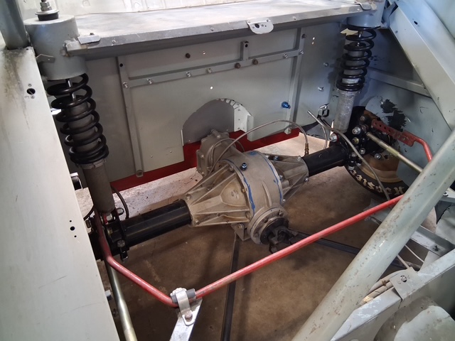 The rear floor has been cut away and the car currently has a Speedway Engineering Mini-Quick change rear end in it. The car was raced with an MGB rear end. (Converted to rear discs) The original RX3 rear end housing is included as well. (Not pictured) I actually sold the Mini-Quick change to Bill but he never raced the car with that rear end.