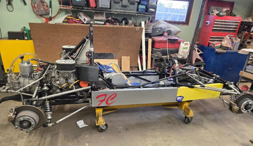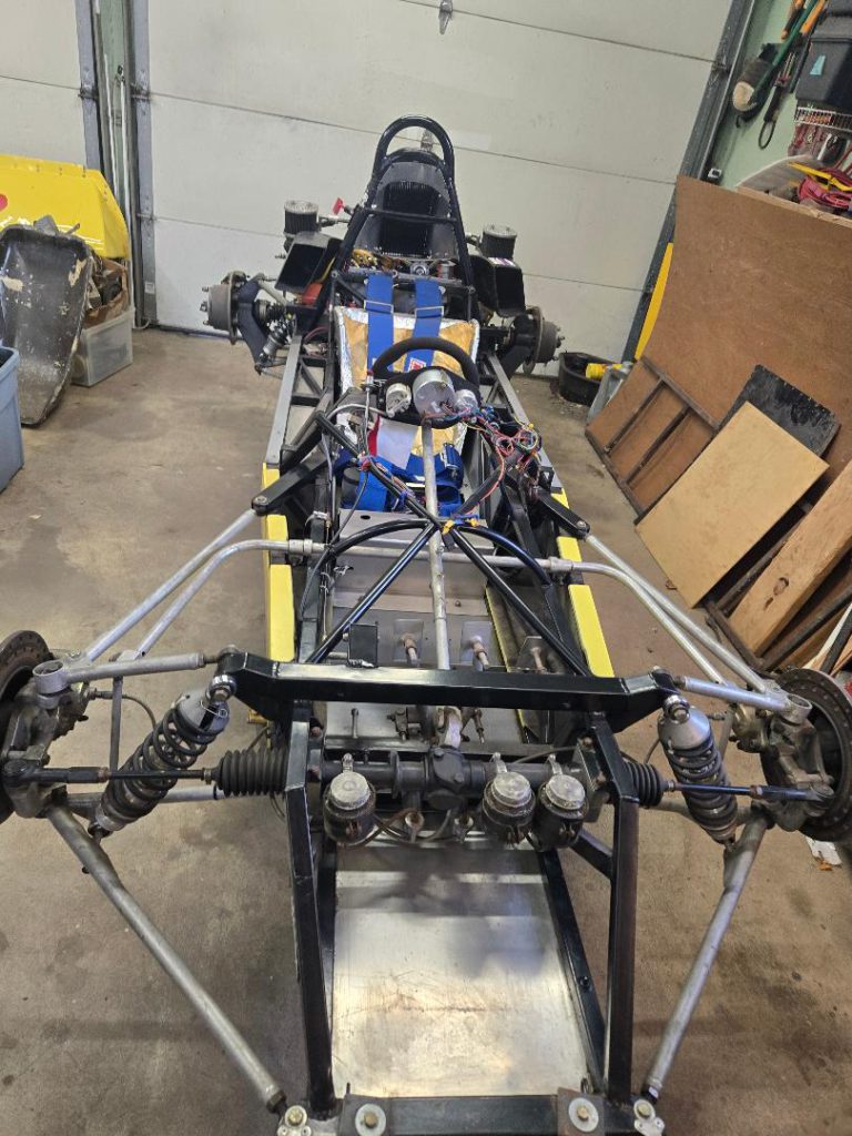 It’s an “All steel” car with no fiberglass parts. It has vintage Minilite wheels (4 x 4.5), original pedals, steering, etc. In other words, it hasn’t been cut up too bad.